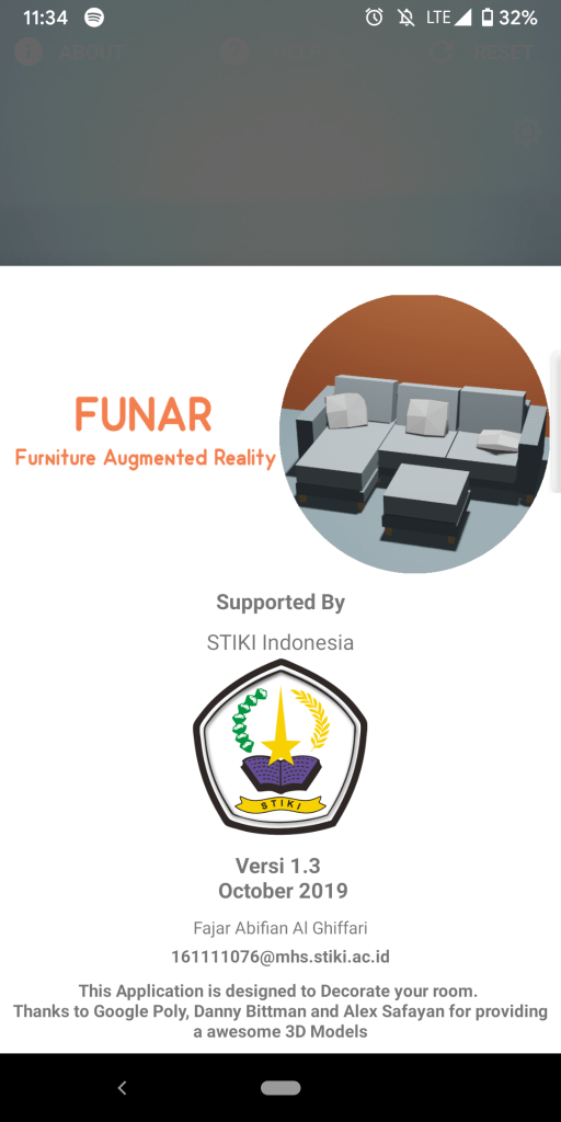 Fun AR merupakan aplikasi yang dibuat yang bertujuan untuk penataan perabotan rumah. Dengan mengimplementasikan Google ARCore penulis sekaligus pembuat akan menjabarkan bagaimana cara penggunaan dari aplikasi ini.
